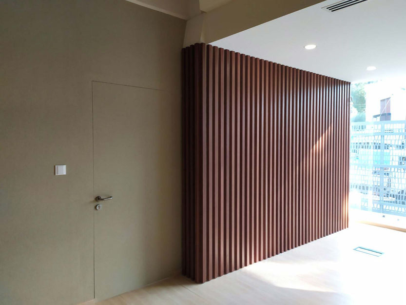 Our part in this project has been to manufacture and install the timber slat wall cladding, fire-rated and non fire-rated doors and the rest of the fixed furniture.